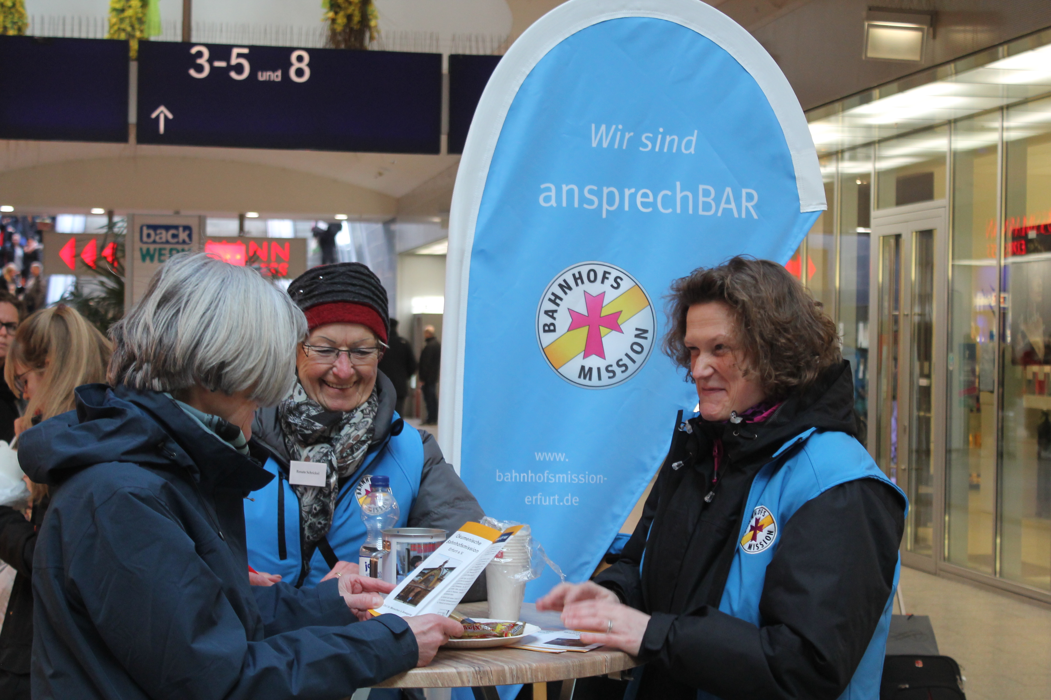 Als „Engel am Zug“ haben wir im Jahr 2017 am Erfurter Hauptbahnhof eine Ökumenische Bahnhofsmission gegründet. Darin unterstützt uns die Konferenz für kirchliche Bahnhofsmission (KKBM) und deren Bundesgeschäftsstelle in Berlin.